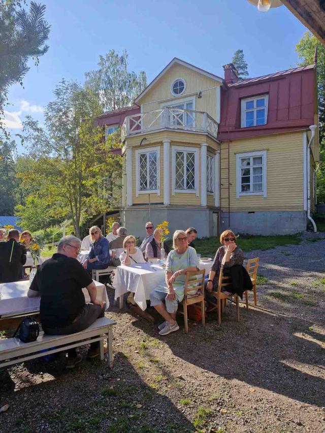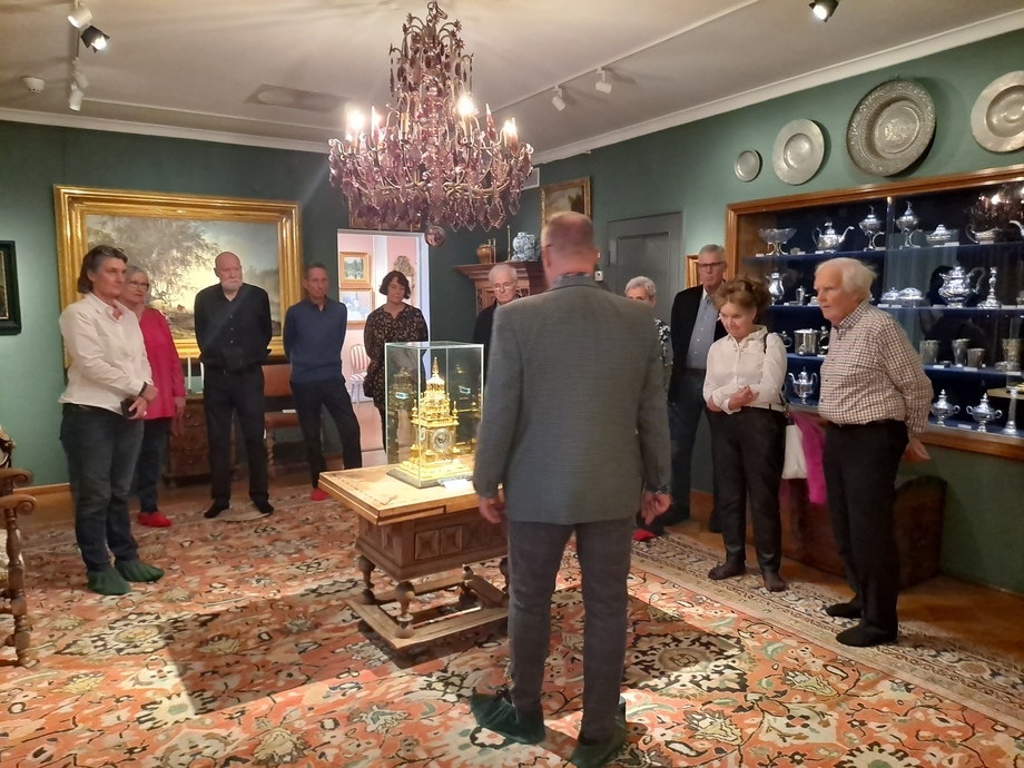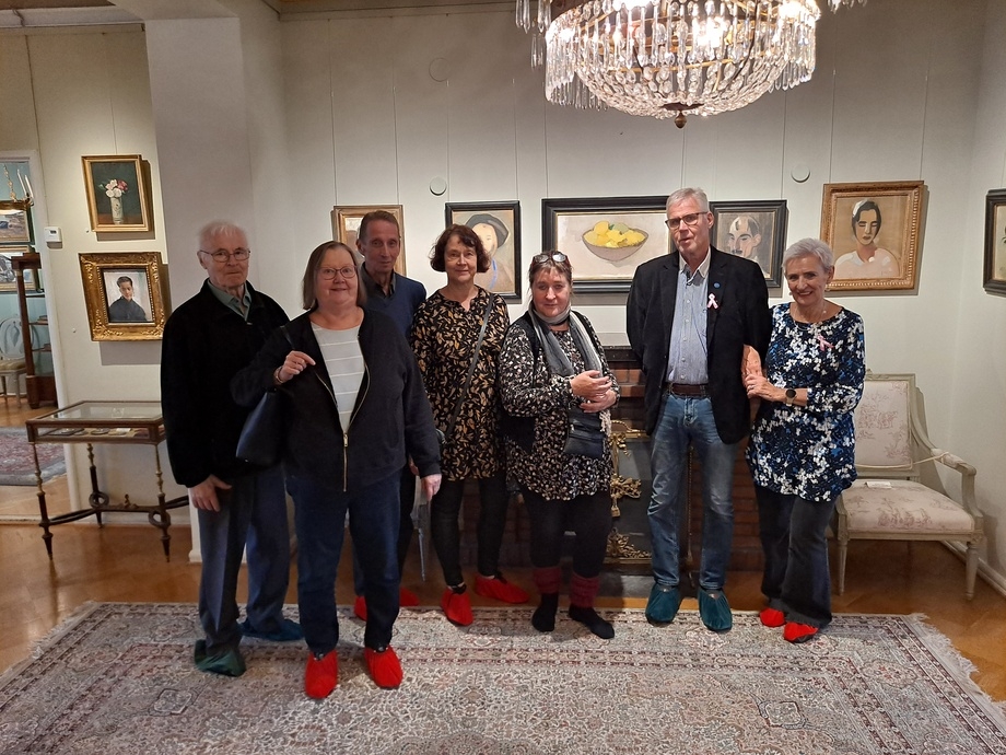 Valkosipulin ystävät jatkoi lounas- ja taidetapaamisia torstaina 5.10.2023. Ensin kokoonnuttiin lounaalle Töölöön kulttuuri- ja taideravintola Eliteen, mistä jatkoimme Lauri ja Maria Reitzin kotimuseoon kulman taakse. Museossa oppaamme Ari Kovero kertoi paitsi perheen myös kokoelmaan kuuluvien esineiden tarinoista kiinnostavalla ja mukaansa tempaavalla tavalla. Maalaustaiteen kokoelmaan kuuluu mm. Helene Schjeftbeckin, Albert Edefeltin, Wrightin veljesten, Ellen Thesleffin ja Akseli Gallen-Kallelan teoksia eli kokoelma keskittyy suomalaiseen taiteeseen 1800-luvulta 1940-luvulle. Kokoelma sisältää lisäksi kelloja renessanssista empireen, esimerkkinä mainittakoon kullatusta pronssista 1640-luvulla Augsburgissa valmistettu kello, josta voi lukea paitsi kellonajat, myös päivämäärät, viikonpäivät, auringon- ja kuun nousuajat ja jopa horoskooppimerkit. Mielenkiintoinen yksityiskohta liittyy peileihin. Aikoinaan oli peilivero ja mitä isompi peili, sitä isompi vero, joten peilit katkaistiin kahtia, jolloin niistä muodostui kaksi pienempää peiliä ja näin saatiin vero pienemmäksi. Hopeaesineistä voisi mainita erityisesti kauniin norsunluukahvaisen kahvikannun 1700-luvun puolen välin paikkeilta ja posliiniesineistä mm. Meissenin ja Sévresin tehtaiden kahviastiastoja ja figuureja. Lisäksi museossa on asehuone, jossa on esineitä 700-luvulta aina 1900-luvulle saakka, muun muassa turnajaishaarniska ja varsijousi 1500-luvulta. Myös itse koti on ehdottomasti vierailun arvoinen paikka tuoleineen, teepöytineen, kirjoineen ja mattoineen.