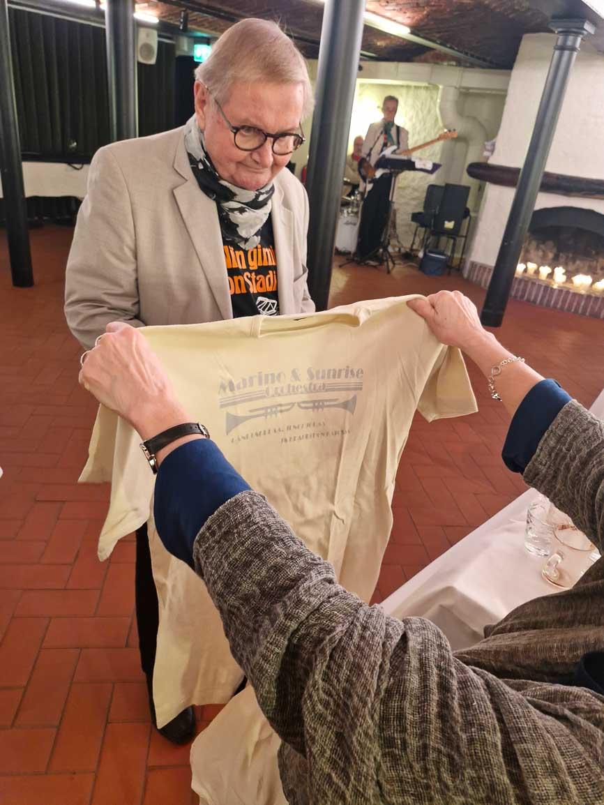 Kokouksen jälkeen vietettiin pikkujouluja tanssiaisten merkeissä. Musiikista ja menosta vastasi Marino & Sunrise Orchestra, joka sai