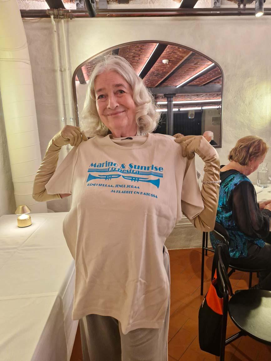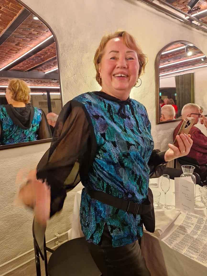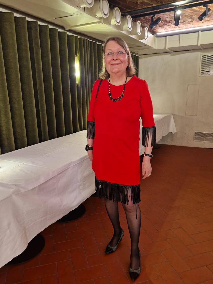 Ihan kasarilla oltiin. Upeita kampauksia ja pukuja. Yhteislaulua ja kyllä me tanssittiinkin. Myös buffet maistui, Kappeli oli tehnyt pari ruokaa erityisesti valkosipulin ystäville. Illan tunnelma oli mitä loistavin.