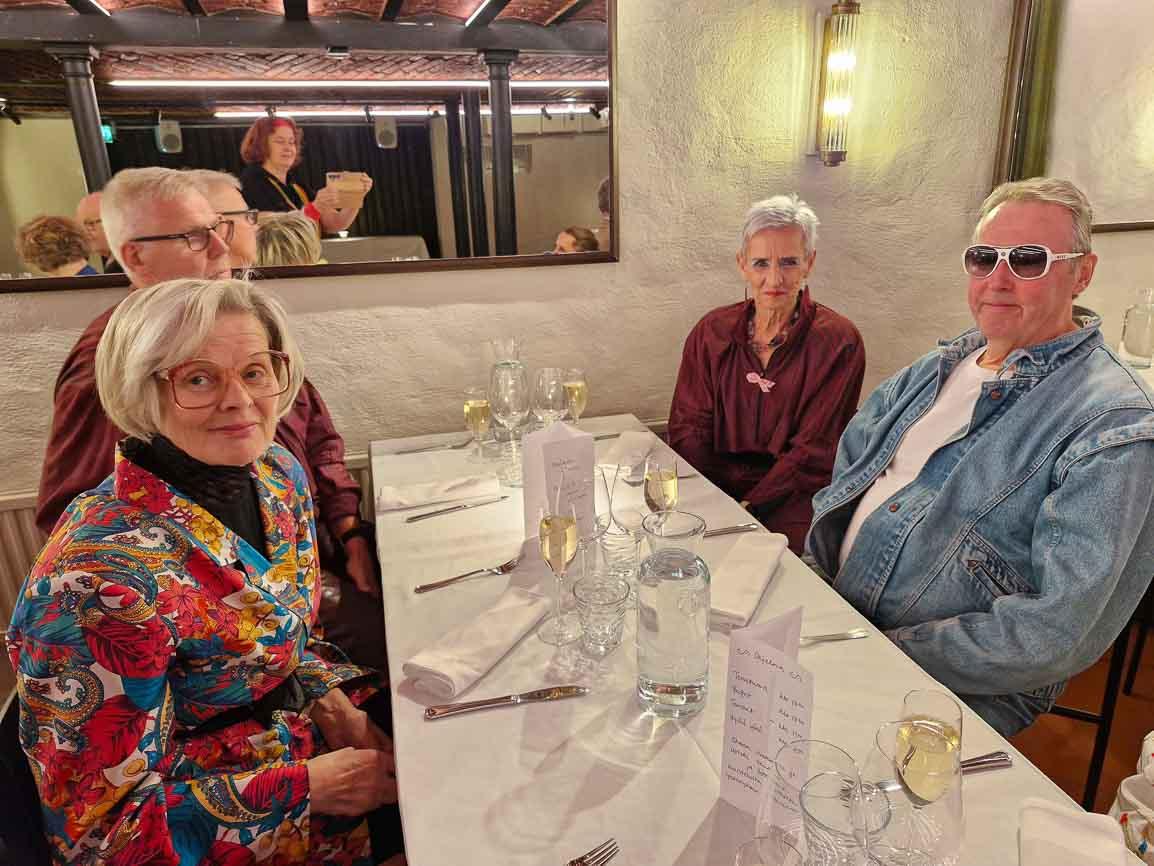 Ihan kasarilla oltiin. Upeita kampauksia ja pukuja. Yhteislaulua ja kyllä me tanssittiinkin. Myös buffet maistui, Kappeli oli tehnyt pari ruokaa erityisesti valkosipulin ystäville. Illan tunnelma oli mitä loistavin.